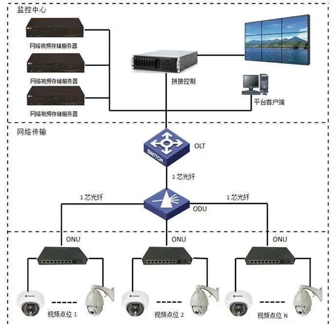 PON架構和光纖架構一樣,也是針對遠距離傳輸的。PON監控傳輸網絡系統主要利用運營商光纖資源,達到傳輸的目的,為中心管理平臺的各項應用提供基礎保障,能夠更好的服務于各類用戶。但是費用較高,有全光網絡設計的項目中應用比較廣泛。