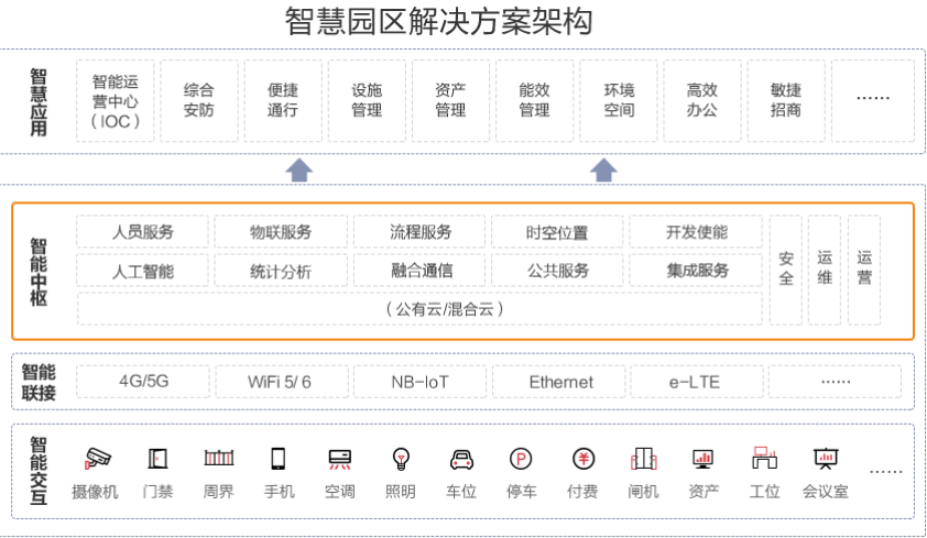以人為本,綠色可持續(xù)發(fā)展,業(yè)務(wù)增值,可作為智慧園區(qū)建設(shè)的總體目標(biāo)。