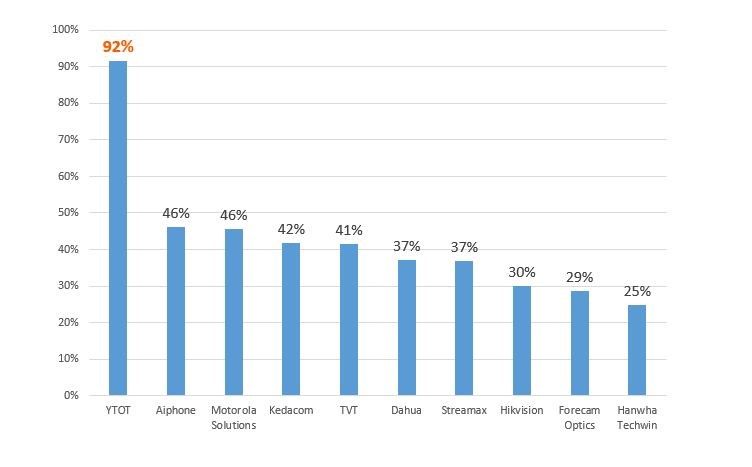 近年來摩托羅拉解決方案一直在增大安防領域的投入,取得了斐然的成績。摩托羅拉通過近年來對Avigilon、IndigoVision、Pelco、Openpath、Envysion等公司的收購,產品線得到極大的拓展,其從最初的無線通訊設備制造商,到現在深入安防垂直市場中,目前其已經擁有成熟的視頻監控解決方案與門禁系統解決方案,隨著市場的不斷深入,其品牌影響力正不斷加強。